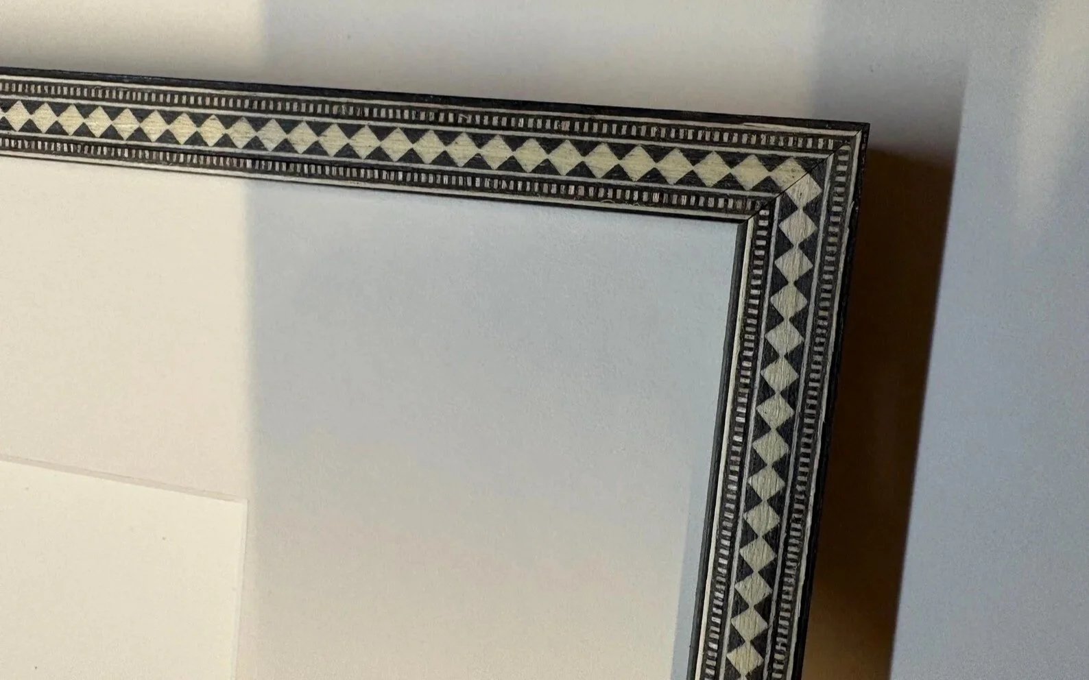 This black and white marquetry frame is available in a variety of sizes with normal glass or AR70 Artglass.